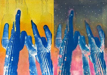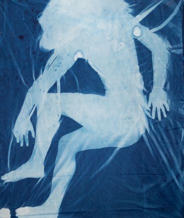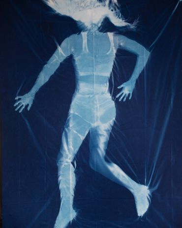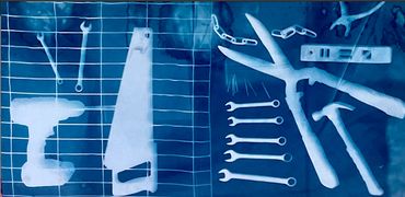 Solar prints are created by coating fabric or paper with light-sensitive medium, and then exposing it in sunlight to create images. Cyanotype, first developed in 1842, is one of the many chemical processes that I use to print images.